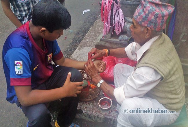 यसैकारण रक्षाबन्धन गर्ने बेलामा गुरु पुरोहितले “येन बद्धो बलिराजा दानवेन्द्रो महाबल तेन त्वाम् प्रतिबध्नामी रक्षेमा चलमा चल” भनी रक्षासूत्र रक्षाबन्धन अथवा डोरो बाँध्ने वैदिक परम्परा रहिआएको छ । मानव रक्षाका लागि जप, तप र पूजा गरी मन्त्रिएको रक्षाबन्धन वैदिक परम्पराको मन्त्रोच्चारण गर्दै ब्राहृमण पुरोहितले यजमानको नाडीमा बाँधिदिने परम्परा छ ।