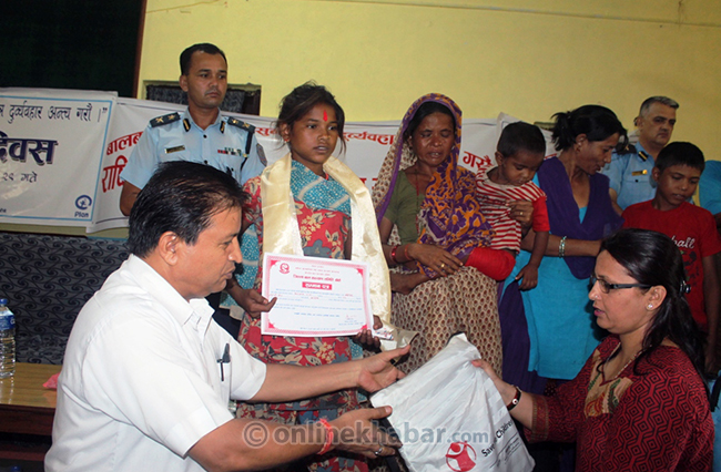 बाँकेका प्रमुख जिल्ला अधिकारी जीवनप्रसाद वलीले लक्ष्मी र उनकी आमालाई सेभ द चिल्ड्रेनले उपलव्ध गराएको लत्ताकपडा र १ हजार २ सय ५० हस्तान्तरण गरे ।